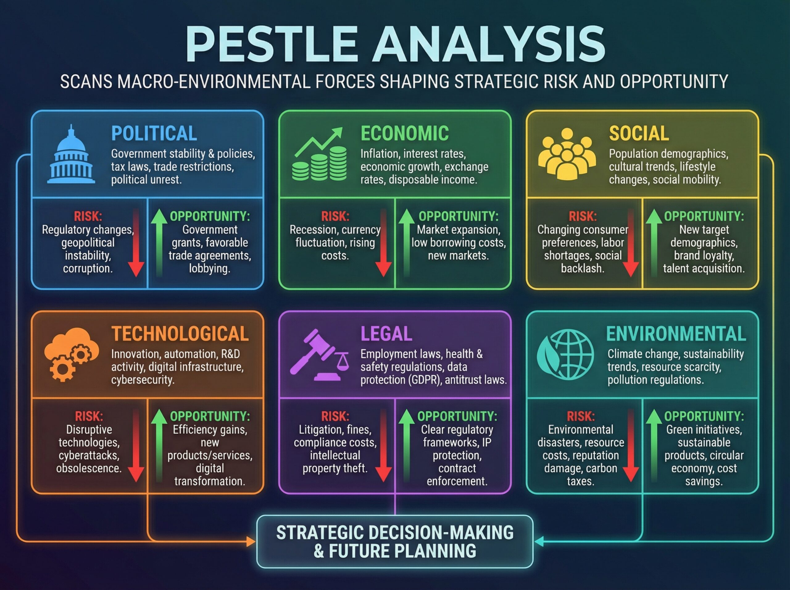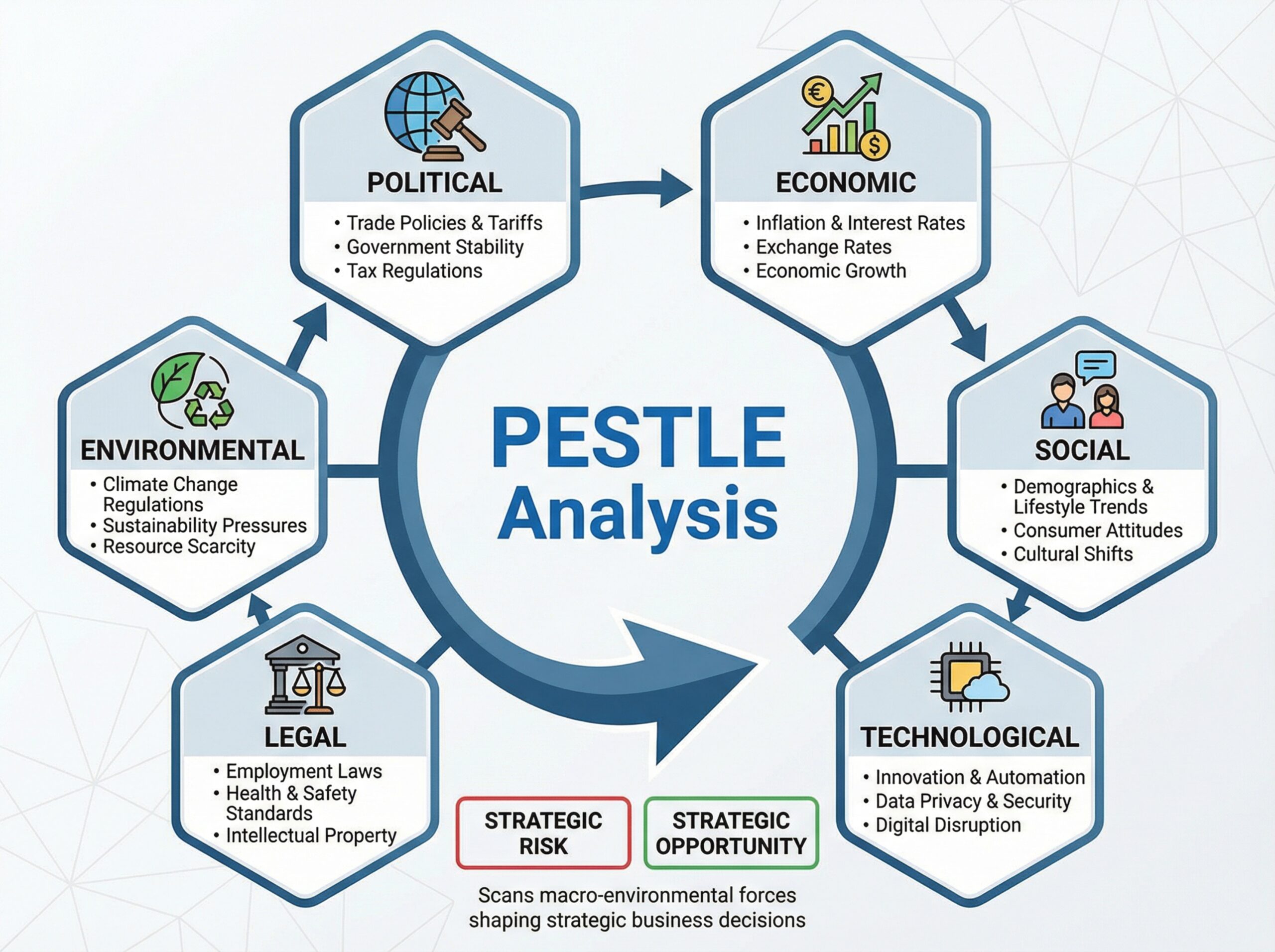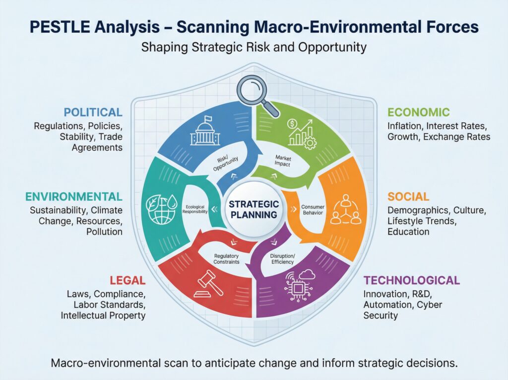πΉ PESTEL is a lens, not a conclusion. It sets the external stage for decision-making.