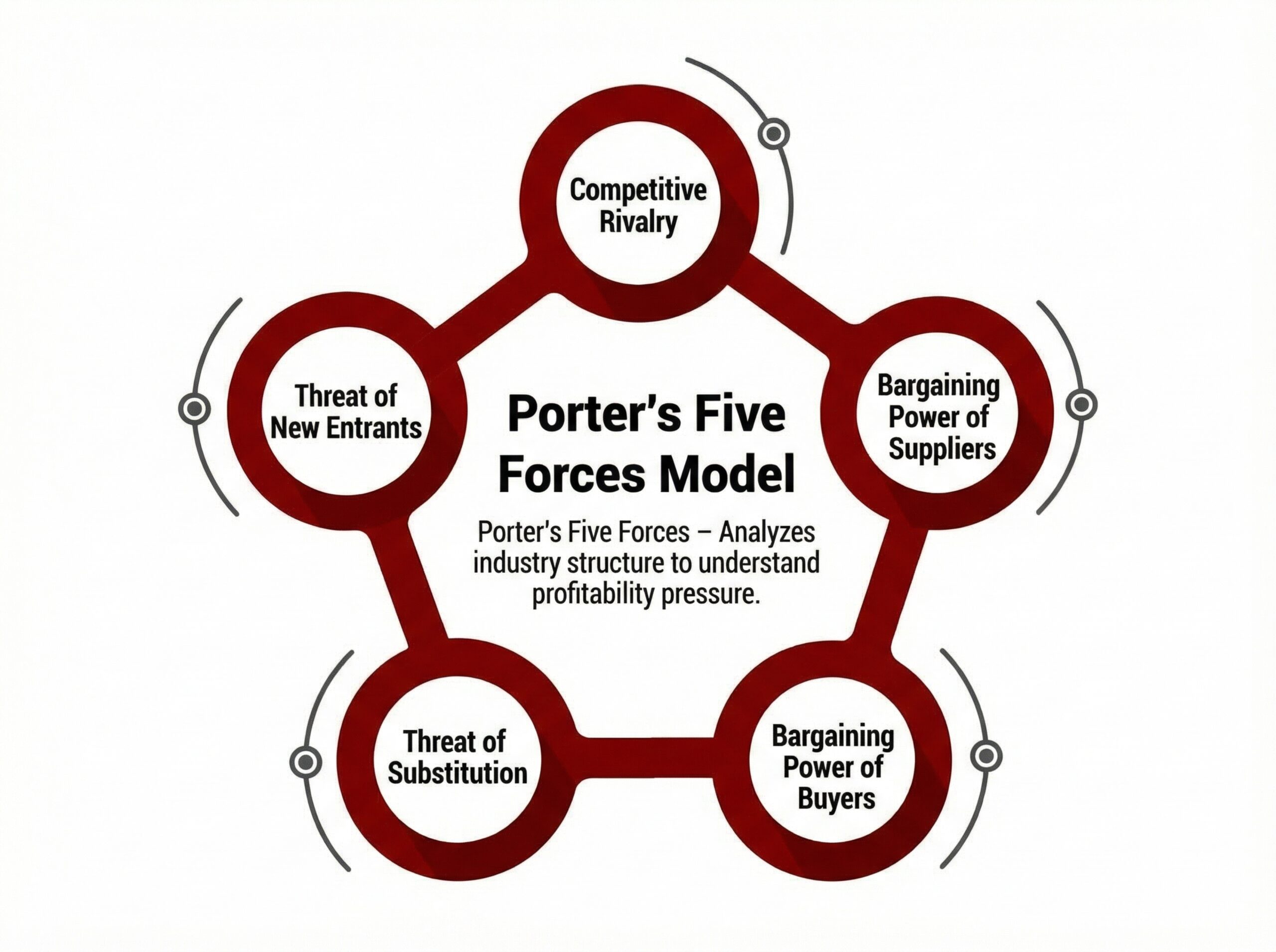 Porter’s Five Forces is an industry structure analysis framework used to understand competitive pressure and long-term profitability.
