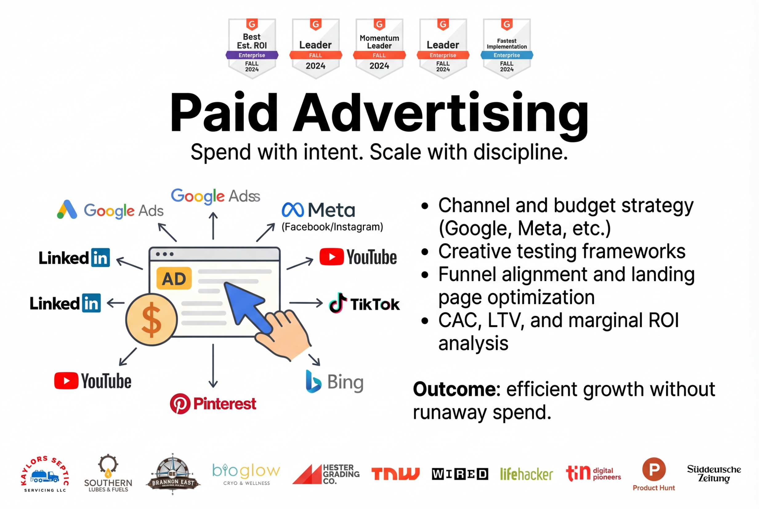 Paid media should accelerate what already works—not mask broken fundamentals. I help teams design and optimize paid systems that scale profitably.